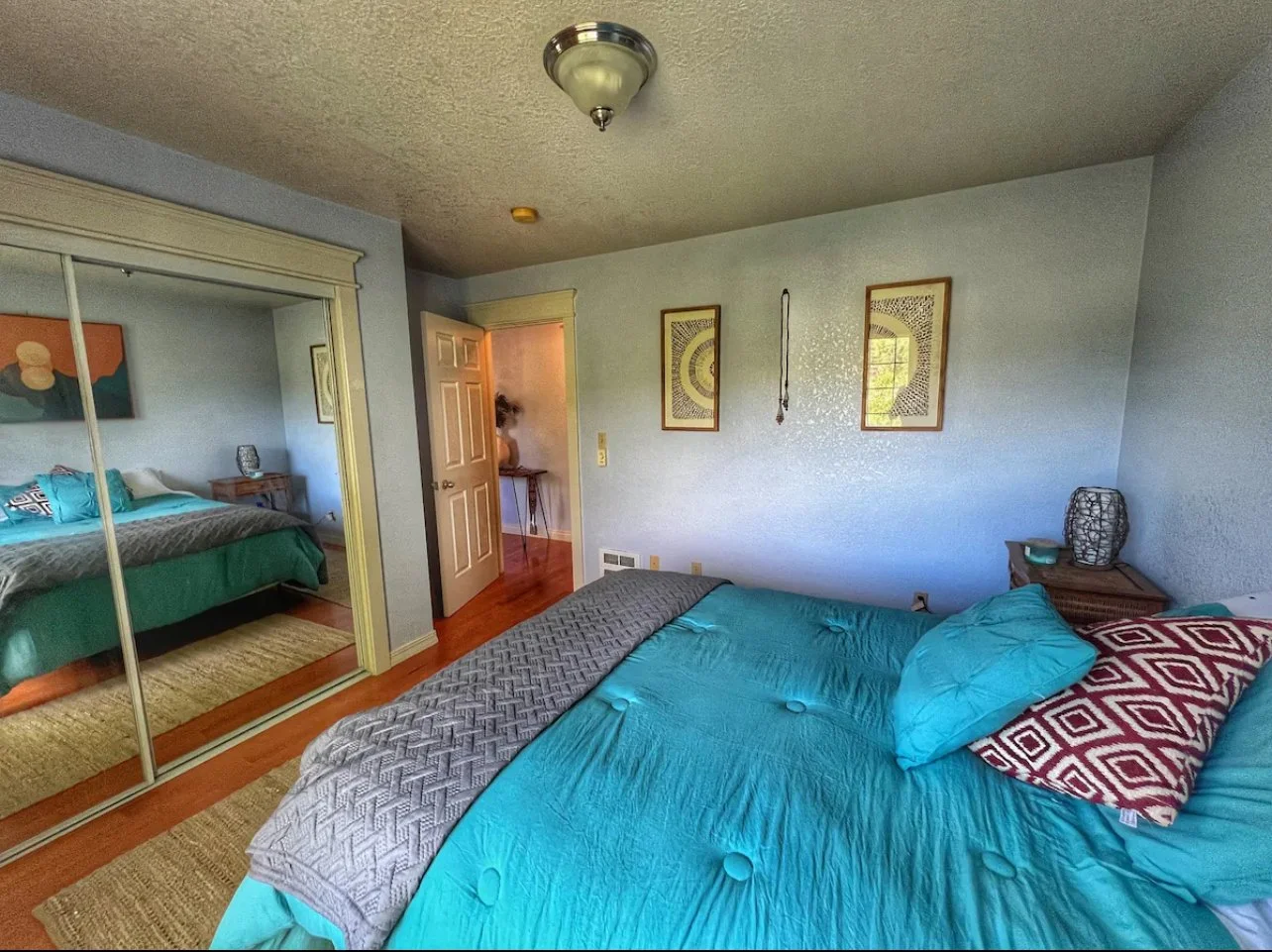 Beautiful private single room with private bathroom and private outdoor seating in house with a shared entrance. Comfortable queen size bed, coffee maker and office space with desk.